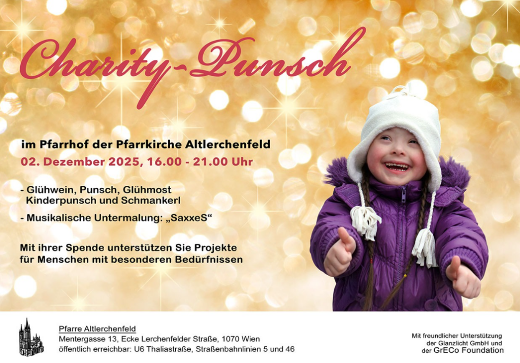Mittwoch, 2. Dezember 2025 von 16-21 Uhr: Charity-Punsch im Pfarrhof der Pfarrkirche Altlerchenfeld