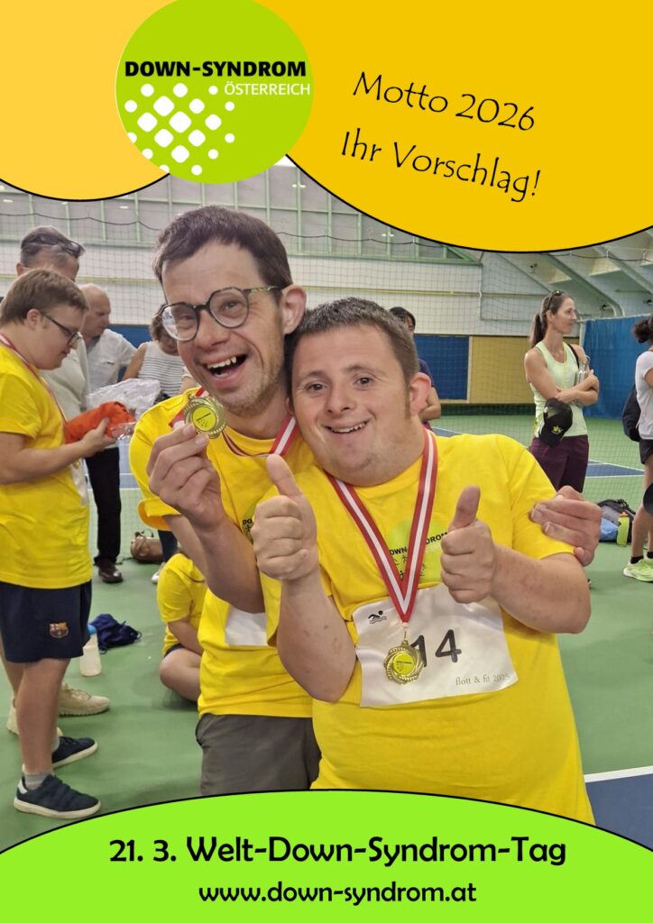 NEU 2026 – Mitmachaktion: Dieses Jahr möchten wir Sie einladen mitzugestalten. Senden Sie uns ihren Vorschlag für das Poster-Motto 2026 an office@down-syndrom.at